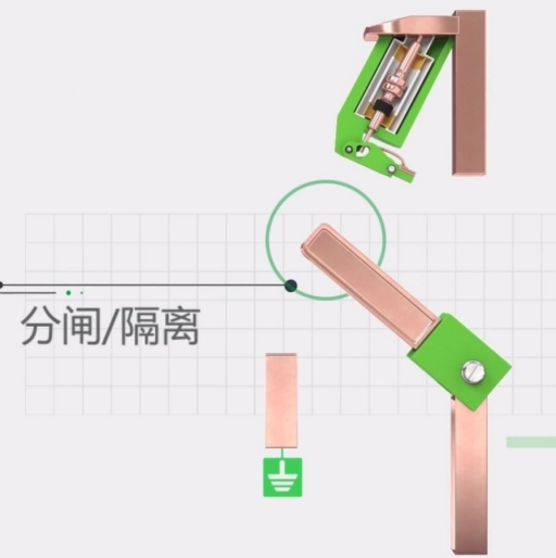 然后,電流通過處于閉合方位的真空滅弧室。接下來,在動觸頭的推動下,樞軸桿旋轉并驅使真空滅弧室開斷。