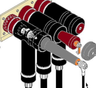即對三工位開關(guān)接地靜觸頭裝置絕緣套管和可拆開的接地短接排,如施耐德的RM6,為了測驗電纜絕緣和查找毛病,有可能在不斷開銜接設(shè)備的情況下,經(jīng)RM6向電纜引進42kV直流實驗電壓,繼續(xù)15分鐘;為了經(jīng)過接地觀察窗引進直流實驗電壓,應(yīng)閉合接地開關(guān)和翻開可移動接地銜接設(shè)備,實驗時需運用特殊實驗夾子。