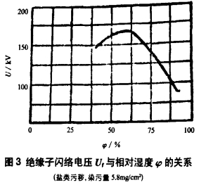 電纜分支箱地處交通要道,背靠山坡,面向公路,塵土很大,絕緣子外表的積塵較多,在污層受潮時(shí)。其間所含可溶性鹽類(lèi)及酸堿成分溶解于水中,使外表電導(dǎo)率驟增,走漏電流許多添加,大大下降閃絡(luò)電壓。一般說(shuō)來(lái),絕緣子的污閃電壓隨其污染程度的添加而下降。污染嚴(yán)峻時(shí),跟著污染程度持續(xù)添加,污閃電壓的下降已很緩慢,但這時(shí)污閃電壓常常現(xiàn)已低于作業(yè)電壓了。單調(diào)污穢的電阻較大,它并不下降絕緣子的閃絡(luò)電壓,一般當(dāng)空氣相對(duì)濕度小于50%~70%時(shí),沿面閃絡(luò)電壓不會(huì)下降;高于這數(shù)值時(shí),跟著濕度添加,閃絡(luò)電壓靈敏下降,如圖3所示。實(shí)踐作業(yè)中,絕緣子污閃事端都產(chǎn)生在霧、露、陰雨連綿等高濕度的氣候.因?yàn)樵谶@種條件下、積塵中水深性的鹽類(lèi)溶解,使污層成為了半導(dǎo)體,大大添加走漏,下降閃絡(luò)電壓。本次事端正值當(dāng)?shù)厍лd一時(shí)的大雨期間,而開(kāi)關(guān)柜柜體的密封較差,柜內(nèi)相對(duì)濕度已達(dá)90%以上,開(kāi)關(guān)柜的操作組織組織嚴(yán)峻腐蝕,以至于完全不能正常操作,由臟污沿面放電的進(jìn)程的談?wù)摽芍蹖拥碾娮柙酱螅呗╇娏髟叫。烹姺_(kāi)越困難,閃絡(luò)電壓也相應(yīng)跋涉。在相同污染和濕潤(rùn)條件下,介質(zhì)外表形狀、南北極間的沿面最短間隔即走漏間隔是影響外表電阻和閃絡(luò)電壓的重要要素。走漏間隔添加,污閃電壓也添加。不同成都的污穢狀況對(duì)線(xiàn)路及變電站絕緣的影響程度是不同的,因而應(yīng)根據(jù)不同的污移狀況,選用相應(yīng)的絕緣規(guī)范確保電網(wǎng)安全作業(yè)"。現(xiàn)在,我們用走漏比距來(lái)估計(jì)臟污條件下絕緣子的耐污功用。因?yàn)槲揖炙犽娋W(wǎng)為渝中區(qū),被定為三級(jí)污區(qū),按變電站設(shè)備考慮泄瀾比距應(yīng)大于4cm/MkV