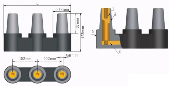 T型電纜接頭,用于電纜分支箱的主網分支系統600A,既能夠聯接600A母排接板M,也能夠和T-II型電纜接頭600A側聯接。或者直接用若干只T型電纜接頭組合聯接,可活絡組合成多路多種型式的電纜分支。